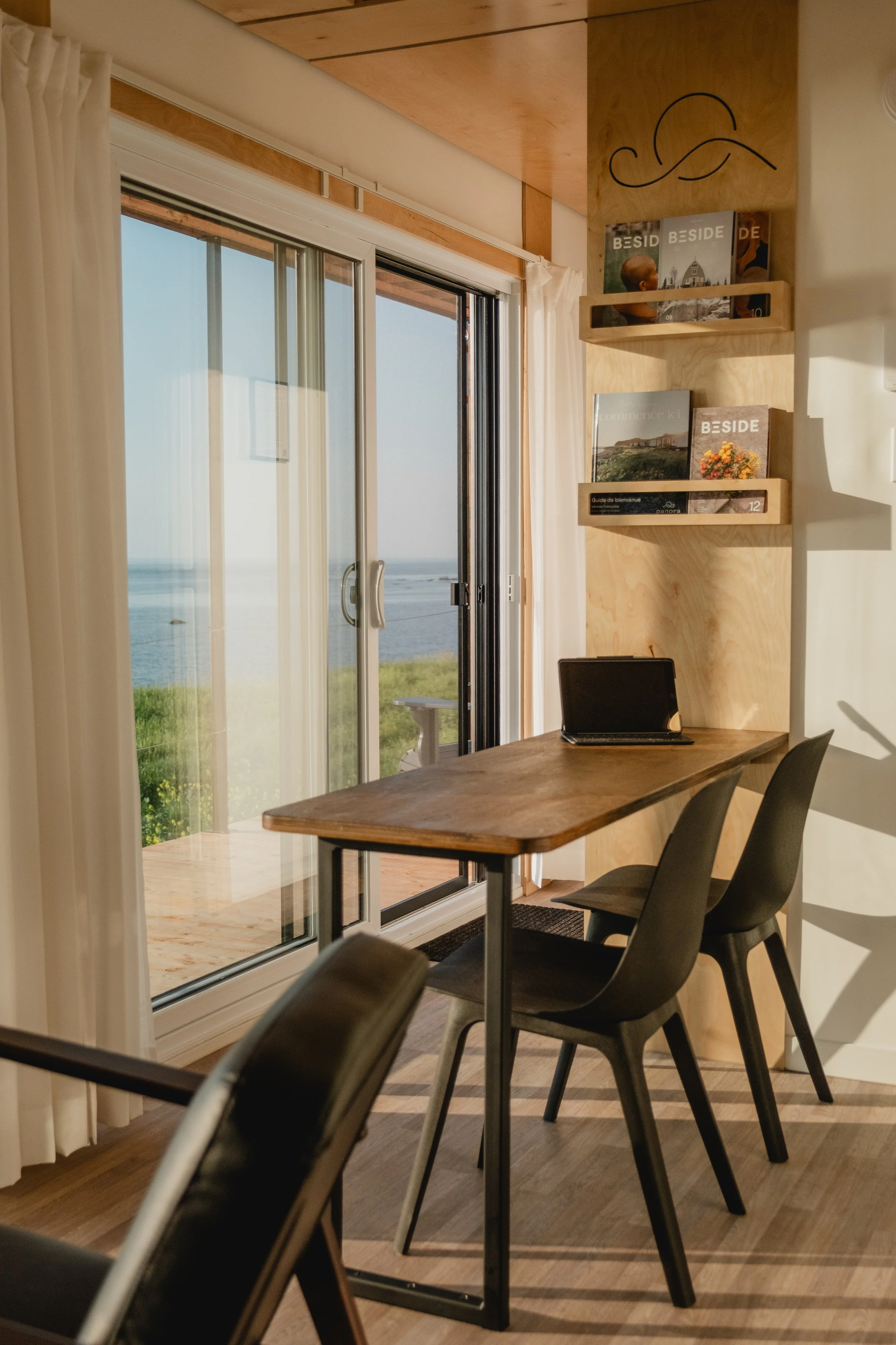 Mobilier et finitions murales dans les loges Panora. Conception et fabrication de Biome Canada.